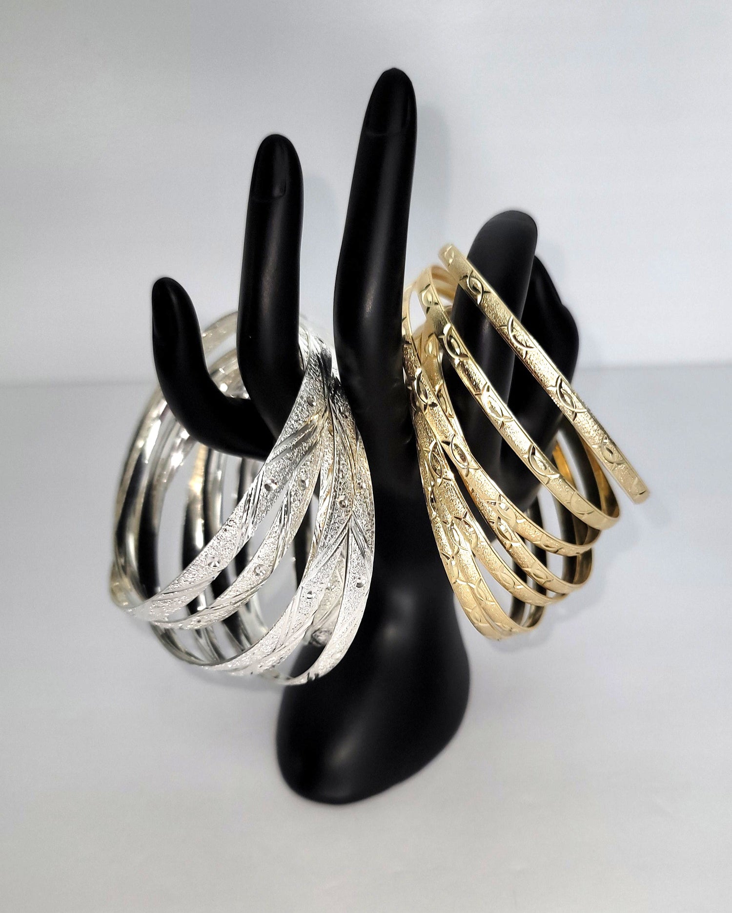 Each 7 sets of bangles are engraved with different designs no 7 sets are the same. Bangles will not be categorized by the engraving design only by color.
