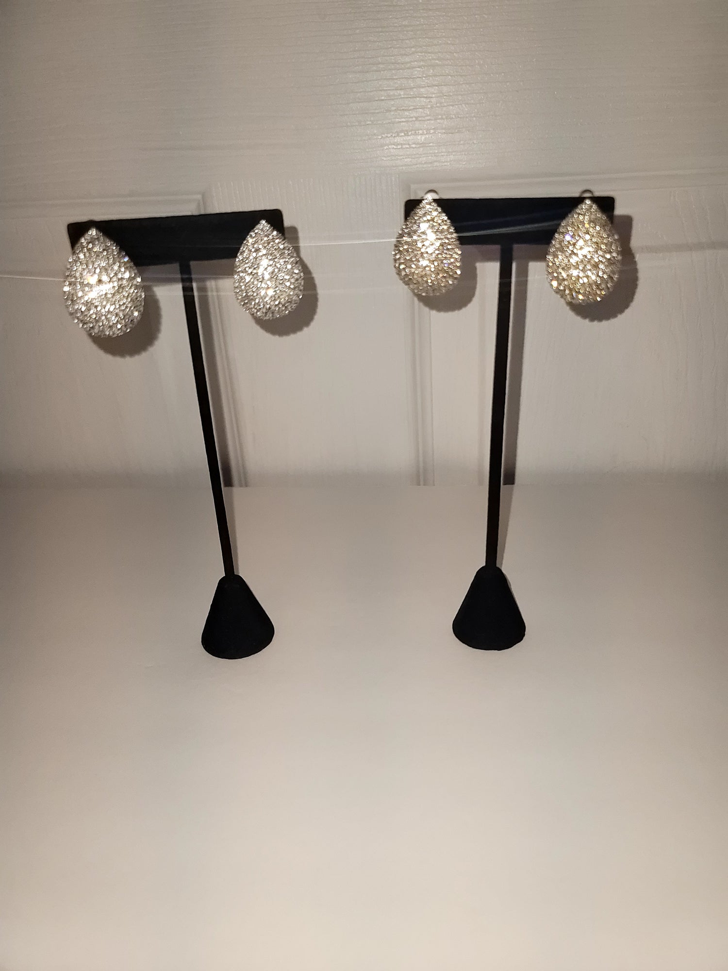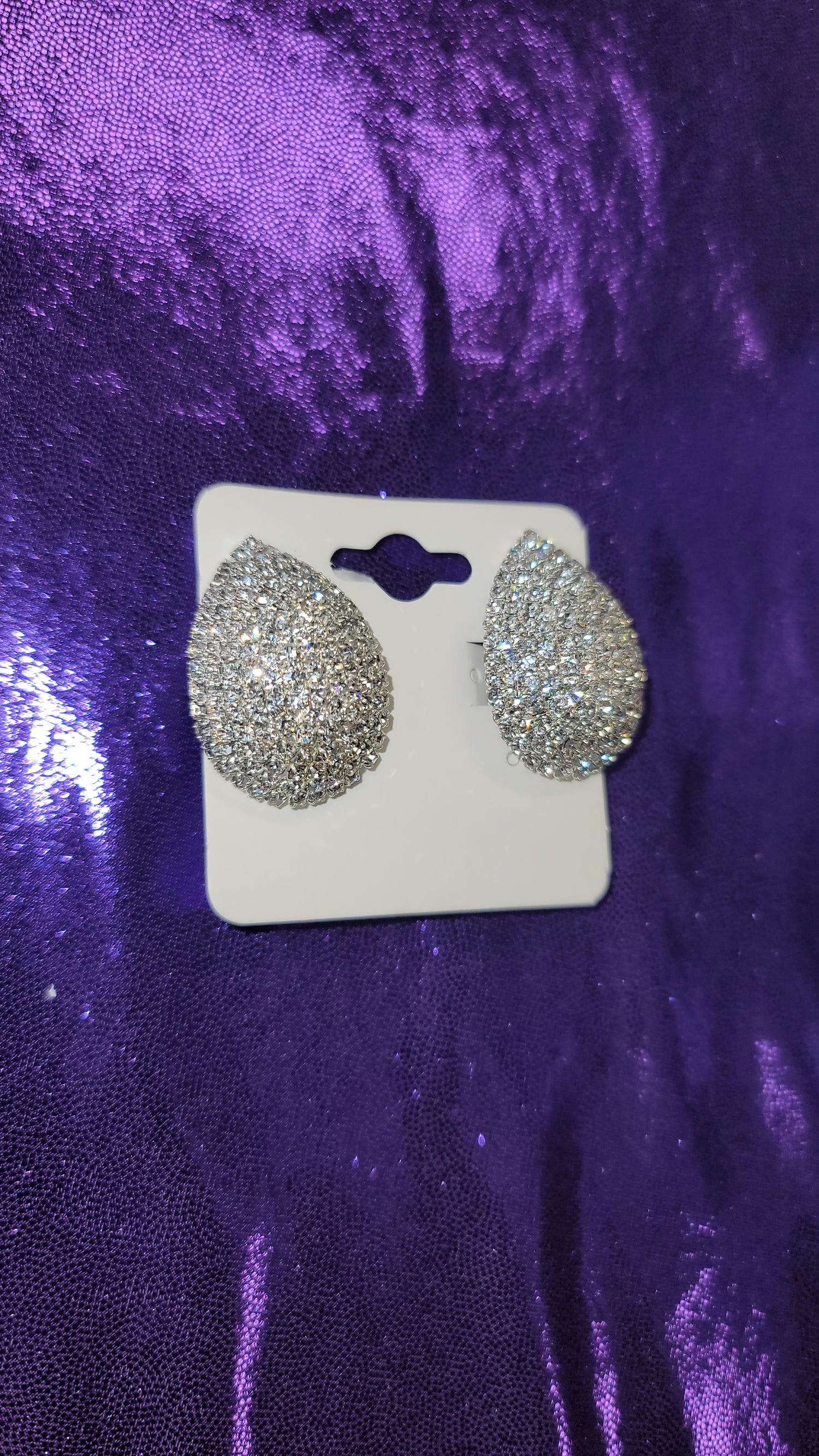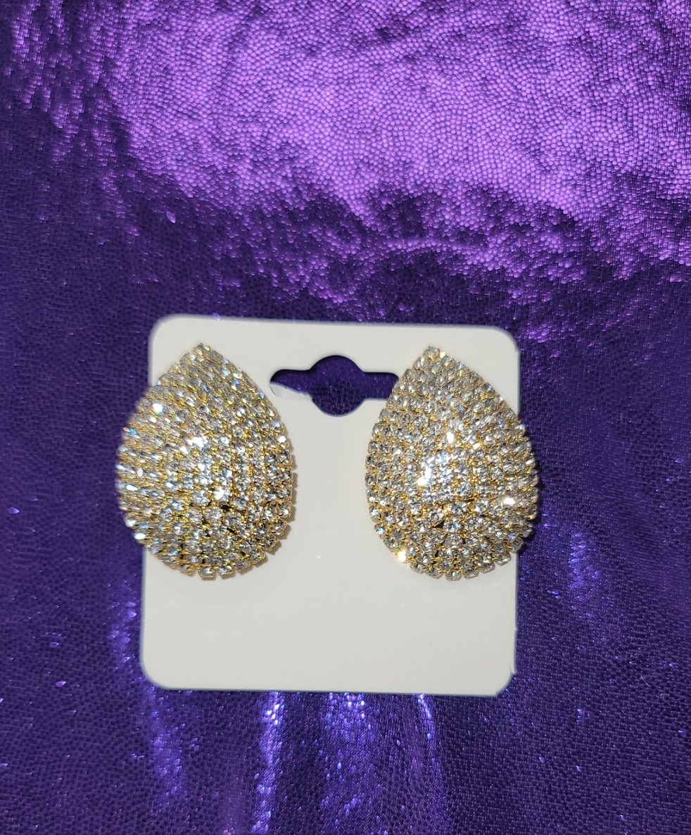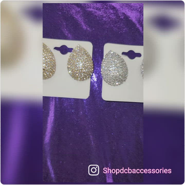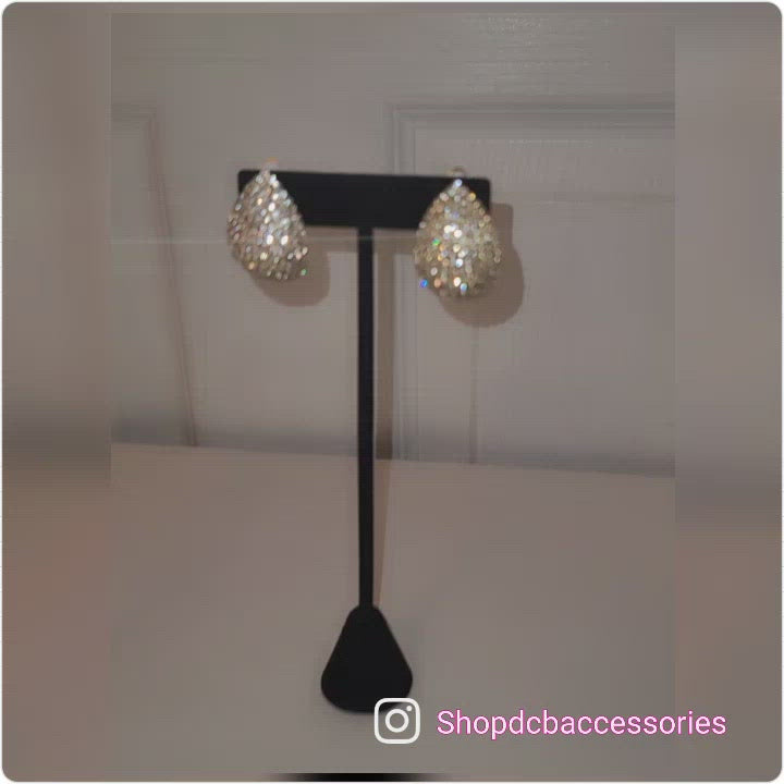 Available in gold and sliver tear dropped shape clip on earrings encrusted with glass rhinestone crystals.