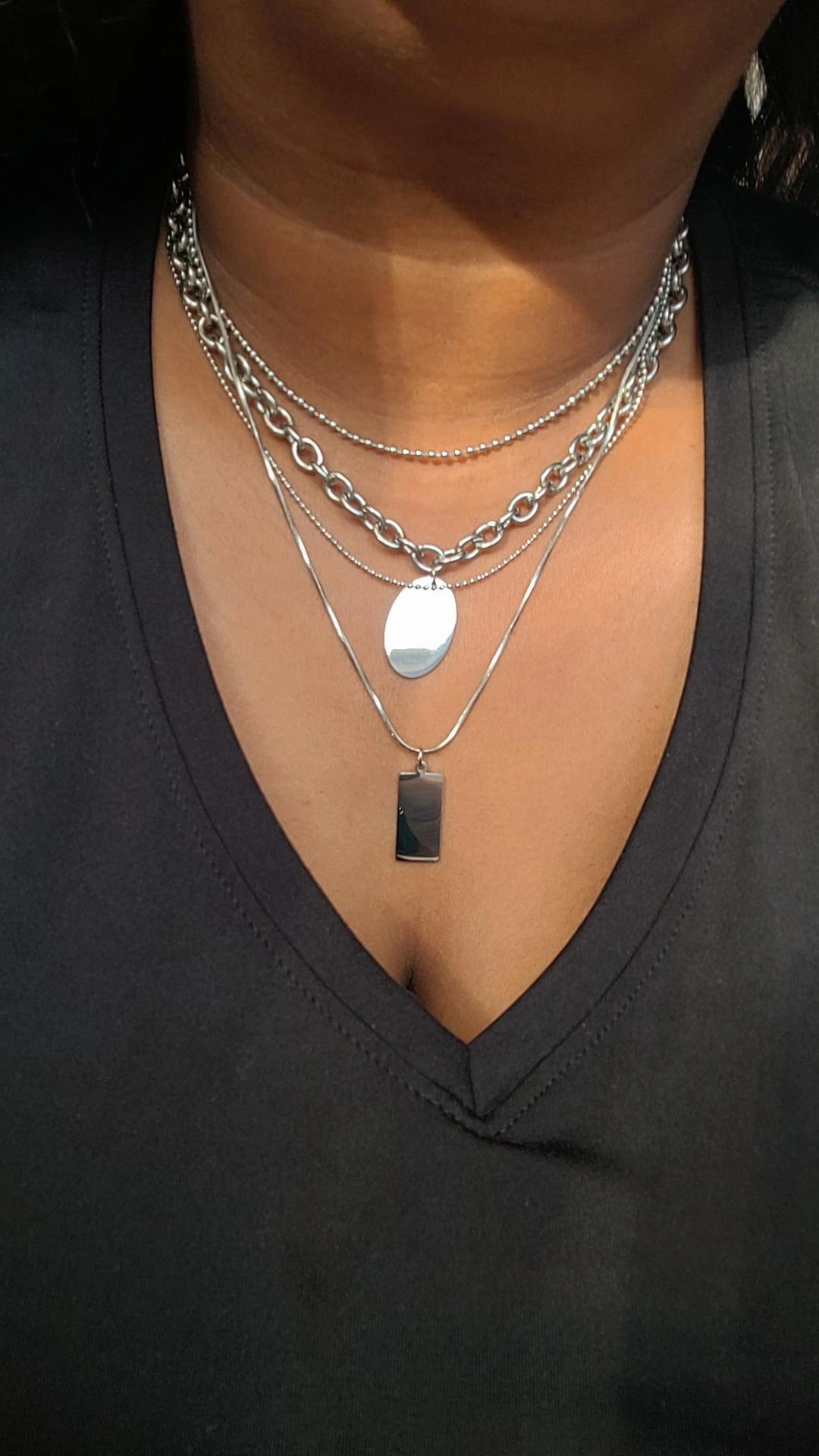Introducing the Layer Your Way Necklace - the perfect accessory to elevate any outfit. Made from high-quality, fade-resistant stainless steel, this necklace boasts a stylish layered design. Enhance your wardrobe with this beautiful piece that will never lose its shine. Made of four separate necklaces you can wear one , each two mix it up or all four.