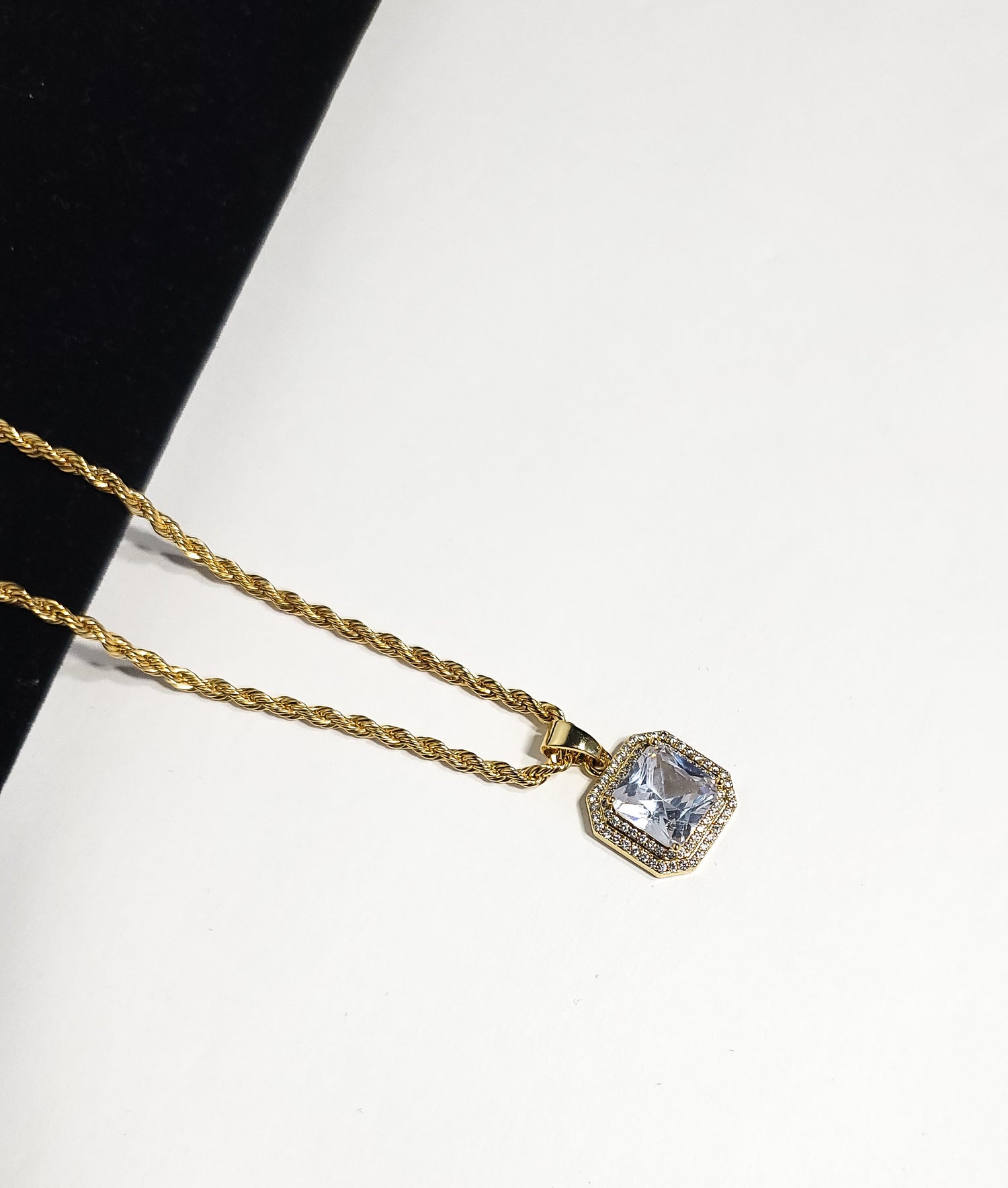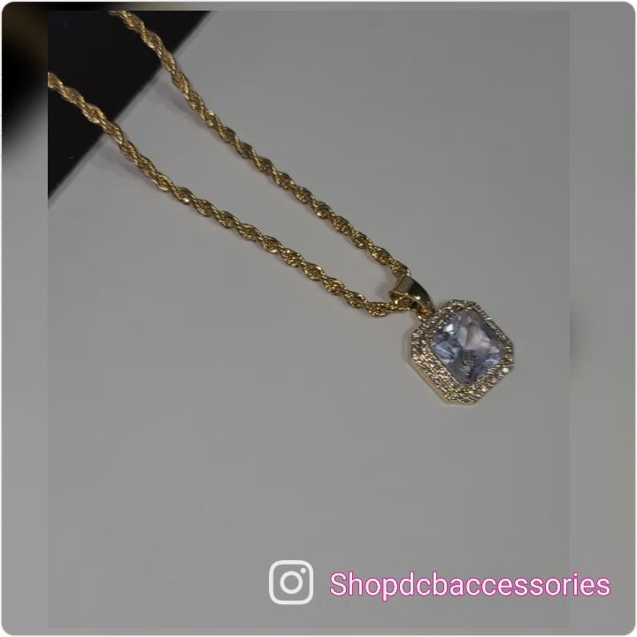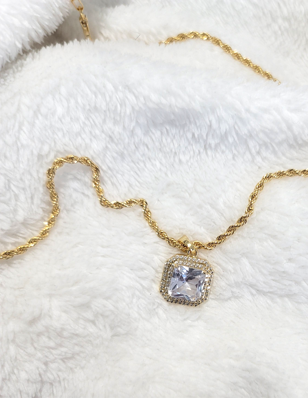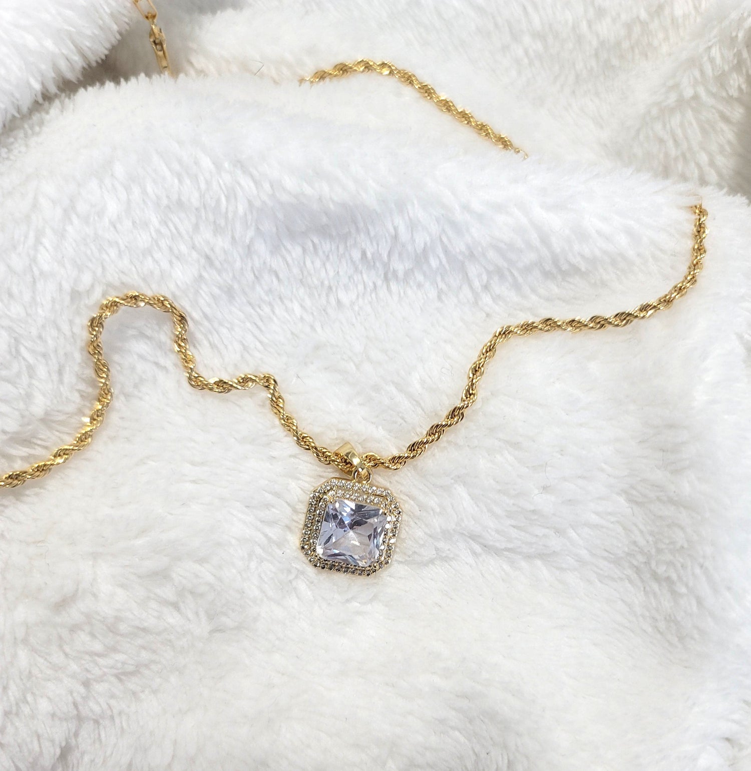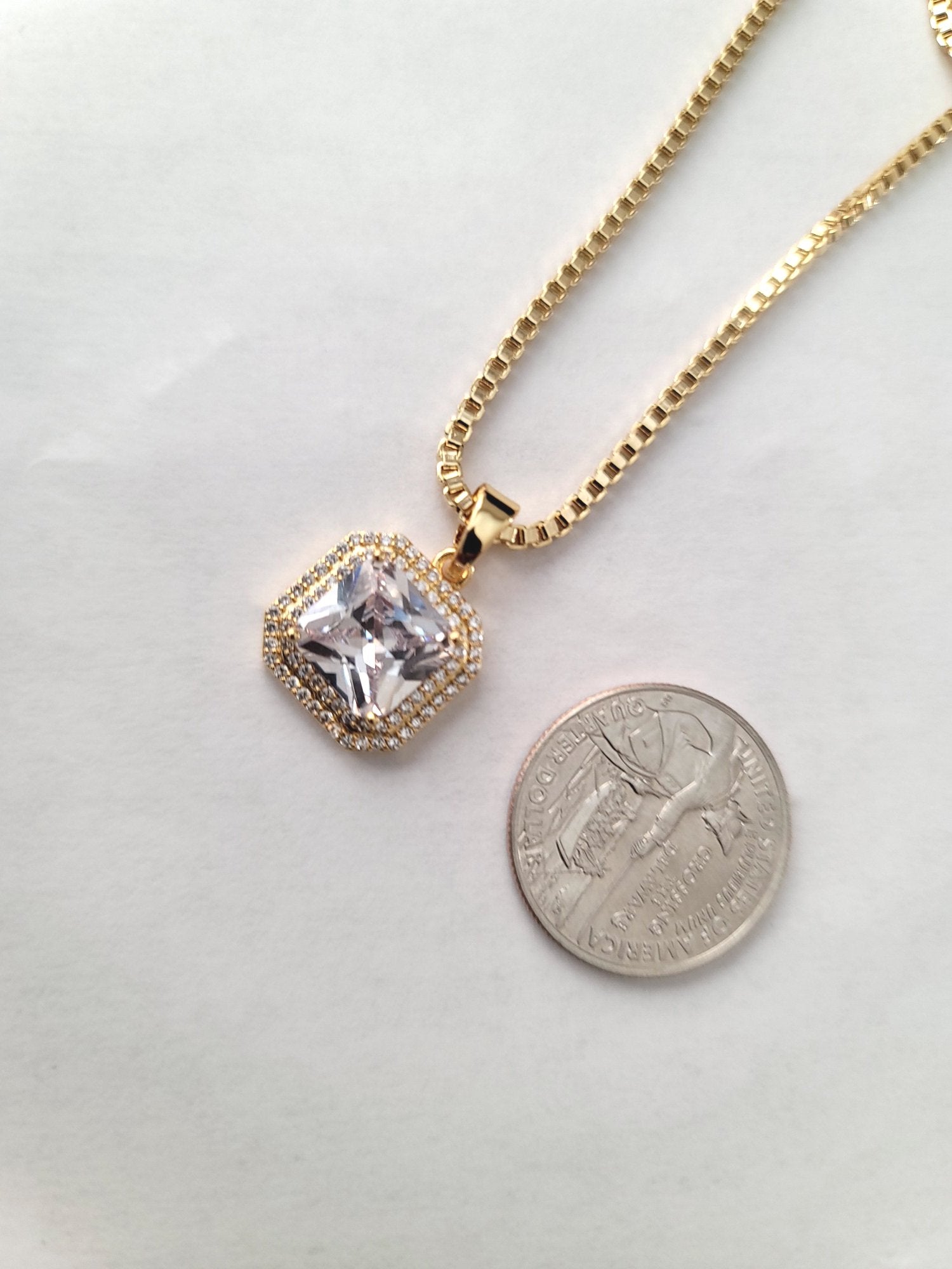 14k Italian gold plated with a large square cz (cubic zirconia) crystal in the center with small cz crystals surrounding the large cz crystal hypoallergenic nickel free.
